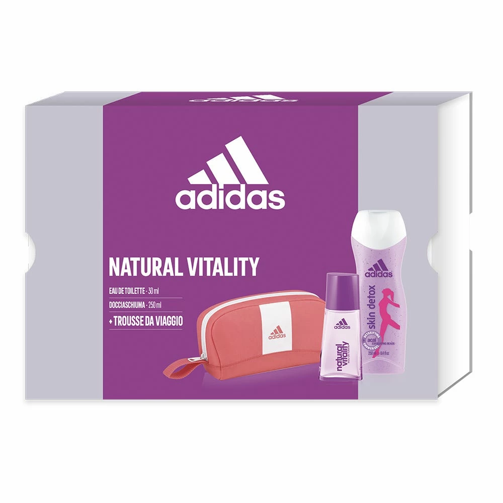– Pochette: beauty case con chiusura a zip firmato Adidas, ideale per il viaggio o la palestra.