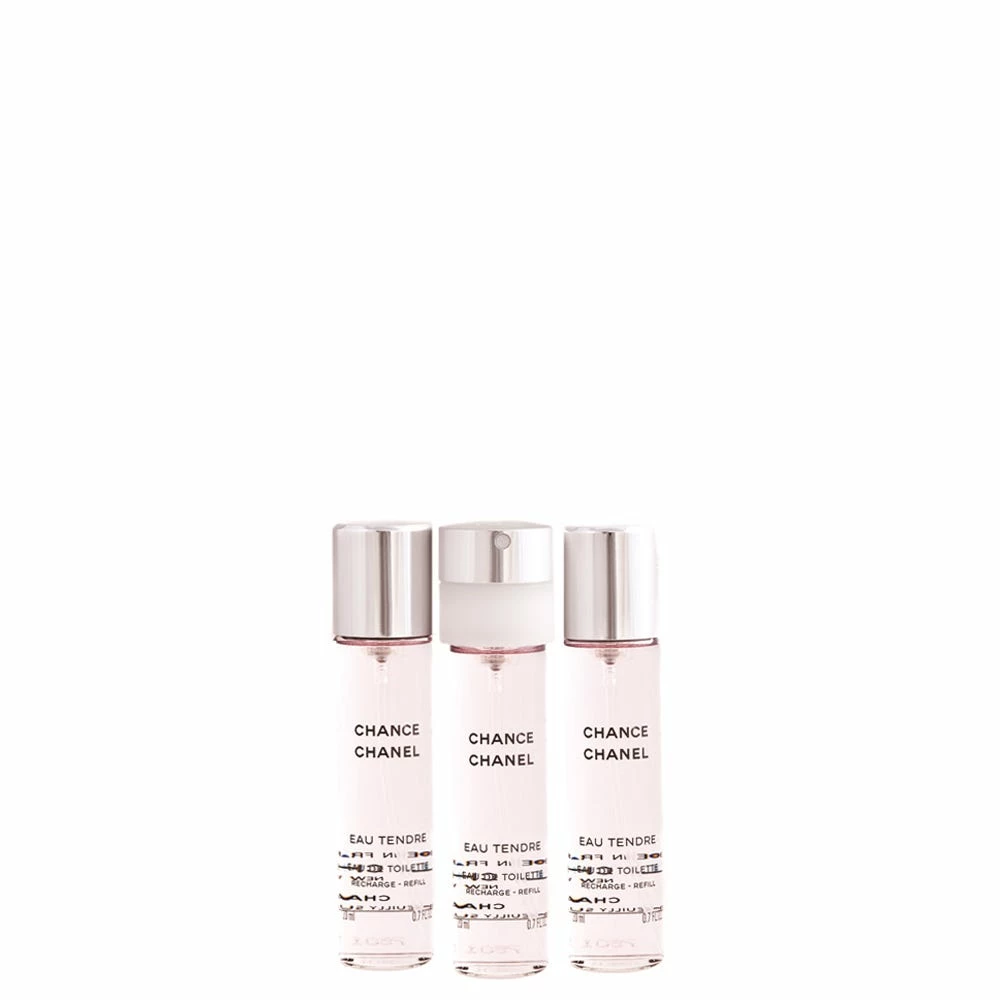 Chance Eau Tendre Chanel Eau de Toilette:La ruota della chance gira ancora e rivela Chance Eau Tendre, una dolce poesia olfattiva fiorito-fruttata.Un profumo avvolgente e delicato come un delizioso slancio di tenerezza.Le note di Pompelmo e Mele Cotogne e Assoluto di Gelsomino s’intrecciano, riscaldate dalla nota rotonda e femminile di Muschio Bianco.Un nuovo portafortuna da cogliere, per una donna ottimista che non si lascia sfuggire la sua chance.