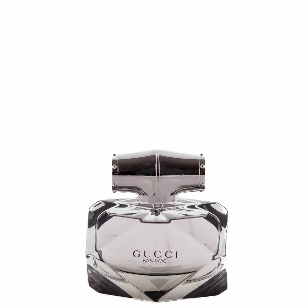 Bamboo di Gucci è la nuova fragranza lanciata sul mercato nella primavera/estate del 2015.Gucci Bamboo rappresenta le diverse sfaccettature della donna Gucci: femminile, eclattica, sicura, energica,forte e soprattutto sensuale.La sua composizione si ispira a questo dualismo, moribda e intensa allo stesso tempo, regalando un viaggio olfattivo affascinante grazie all’utilizzo di ingredienti naturali e ricchi che offrono un viaggio olfattivo unico e affascinante, una combinazione di fiori esotici e intense note legnose.Il flacone in vetro trasparente art-decò, sfaccettato come un diamante, contrasta con la delicatezza del liquido di color rosa tenue, mentre il tappo lucido riprende la forma di una canna di bamboo. Piramide Olfattiva: Floreale