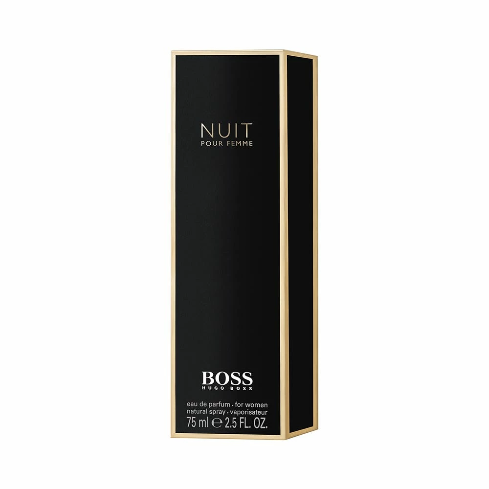 BOSS Nuit Pour Femme è una fragranza ispirata al tubino nero: simbolo per eccellenza di eleganza, sensualità e femminilità.Si Tratta di una composizione olfattiva perfetta che completa la tua personalità e ti regala sicurezza ed eleganza femminile mentre ti prepari con entusiasmo per la serata. Caratterizzata da una moderna composizione di fiori femminili unita a note frizzanti, la nuova fragranza BOSS è l’immancabile tocco finale al tuo stile. NOTE DI TESTA: Le note più forti raccontano l’euforia della donna BOSS che si prepara per un’occasione speciale. La pesca bianca unita alla radiosità dell’accordo di aldeide offre un effetto fresco e frizzanteNOTE DI CUORE: Superate le note più forti, l’accordo principale esalta la raffinatezza femminile, caratterizzato da un bouquet di gelsomino e fiori bianchi, legato alla viola per una sensuale morbidezza.NOTE DI FONDO: Le note vivaci di muschio fanno eco al carattere brillante delle note di testa, mentre accordi di legno e sandalo rendono il profumo morbido e delicato. Famiglia Olfattiva: FlorealeTesta: Aldeide e Pesca BiancaCuore: Viola, Gelsomino e Fiori BianchiFondo: Saldalo, Muschio e Legno caldo