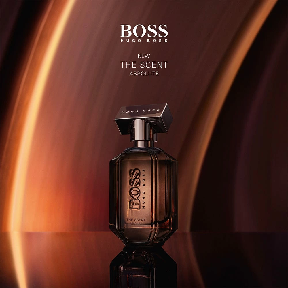 BOSS The Scent Absolute for Her ammalia con un’interpretazione più ricca ed intensa della fragranza femminile BOSS The Scent classica. La deliziosa Pesca Caramellata si fonde con le note irresistibili del Caffé, della calda Vaniglia e dell’elegante Vetiver per creare un’Eau de Parfum seducente, inebriante, irresistibile. L’esordio della fragranza libera note succulenti di Pesca Caramellata che stuzzicano i sensi con il loro delicato fascino femminile. E ancor più sorprendente è la rivelazione della presenza di un accordo di Caffé Ghiacciato – scuro, irresistibile, gourmand – nel cuore della fragranza. La sensuale Vaniglia dona un dolce calore alle note di fondo, elegantemente avvolte nel Vetiver per un finish ricco di contrasti e profondamente seducente. Creata dalla profumiera Louise Turner, BOSS The Scent Absolute for Her è una calda fragranza magnetica Orientale Fruttata. E’ presentata in un flacone dal vetro sfaccettato dalla tonalità viola scuro laccato e rifinito da un elegante tappo metallico dalla forma scultorea.