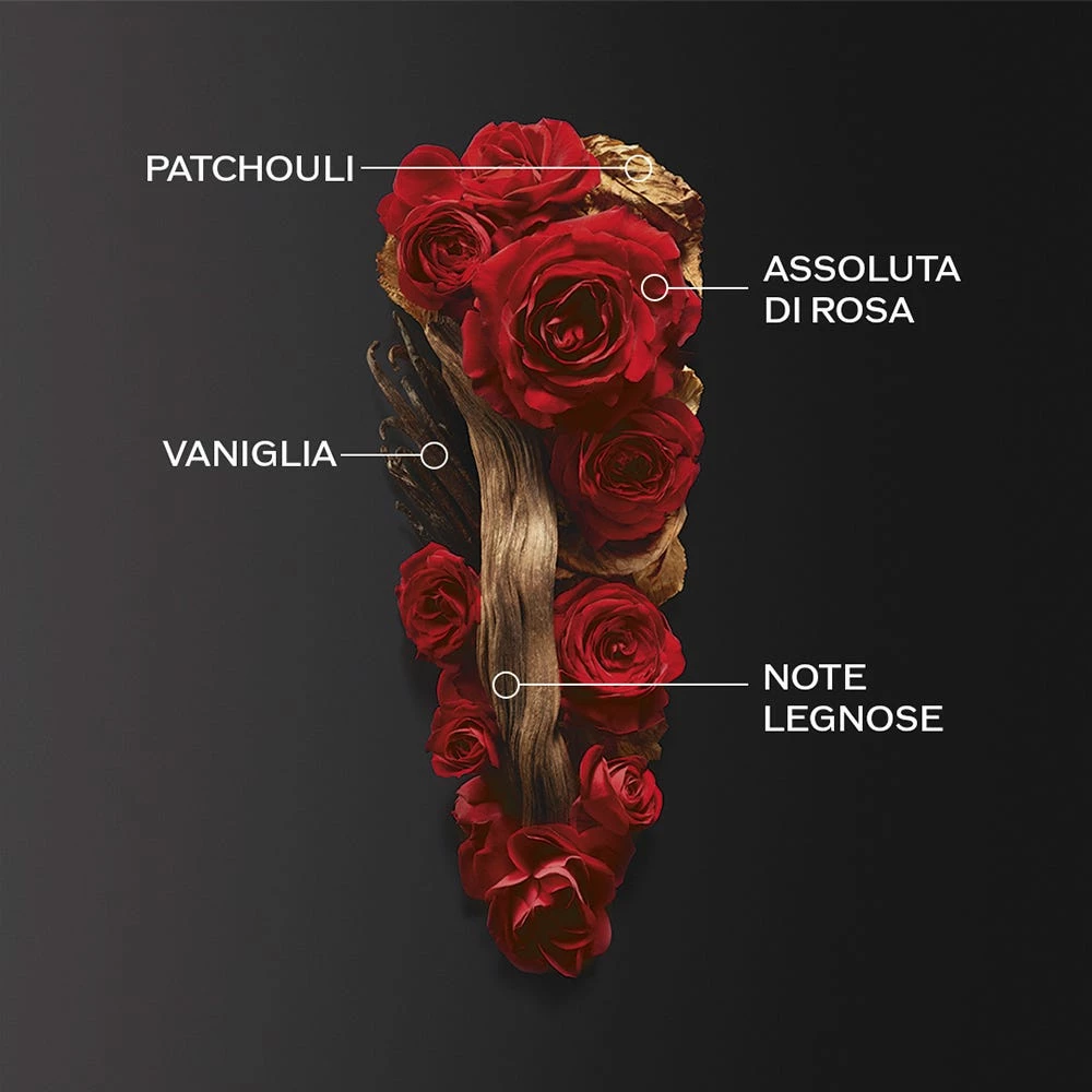 Le sfaccettature vellutate della rosa nella nota di testa giocano con la freschezza delle foglie di ribes nero. La sensualità della vaniglia e l’intensità del patchouli rivelano una base legnosa e completano questo profumo inebriante. Una fragranza femminile irresistibile, l’equilibrio perfetto tra forza e femminilità, passione e serenità, seduzione e affermazione di sé.